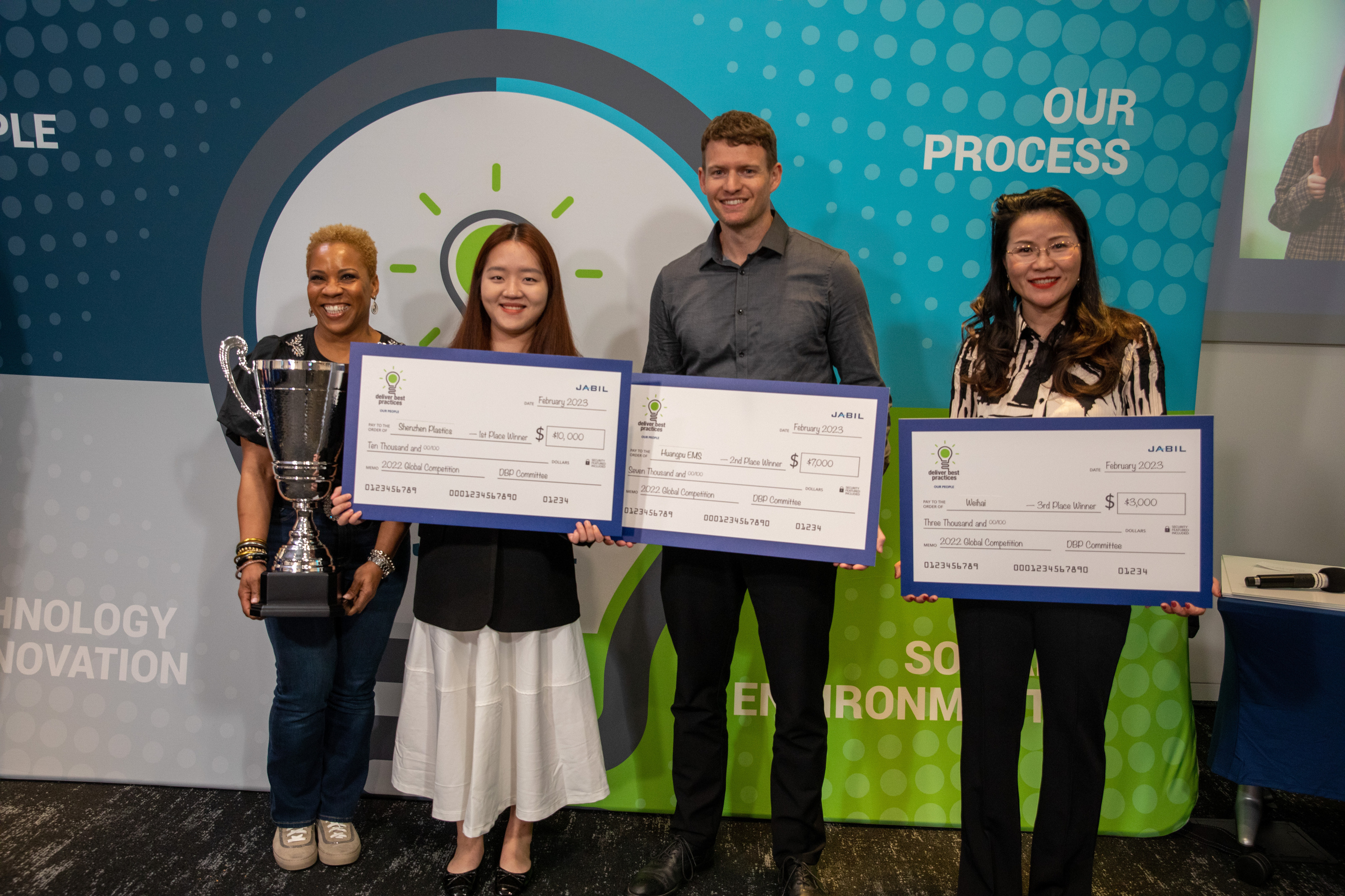 Thank you to all the participants for your time, interest, and dedication in advancing Jabil's vision to be the most technologically advanced and trusted manufacturing solutions provider. We're excited to announce the winners of the 2022 Deliver Best Practices Competition: